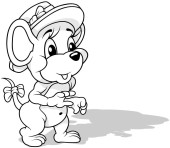 Rysunek Cute Mouse siedzi na ziemi - Ilustracja kreskówki Izolowane na białym tle, Wektor