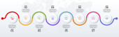 Szablon projektu infografiki i ikony z 7 opcjami lub 7 krokami. używać jako schemat przepływu pracy, prezentacja danych biznesowych, układ osi czasu, kamień milowy, baner, broszura, schemat przepływu