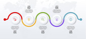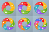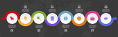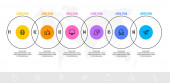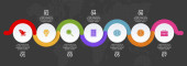 Szablon projektu infografiki i ikony z 7 opcjami lub 7 krokami. używać jako schemat przepływu pracy, prezentacja danych biznesowych, układ osi czasu, kamień milowy, baner, broszura, schemat przepływu