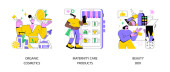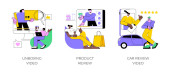 Social media video content abstrakcyjny zestaw ilustracji wektorowych koncepcji. bloger uroda, przegląd produktów, zakupy sprees wideo, moda styl życia kanał, osobisty vlog, ocena produktów abstrakcyjna metafora.