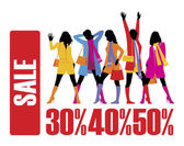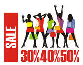 kobiet zakupy z napisem "50% zniżki" na ich torby.