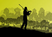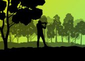 myśliwy sylwetka tło krajobraz wektor koncepcja z fores