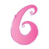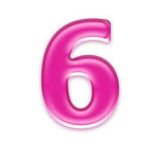 różowy numer 6 w kreskówkowym stylu, kolor numer sześć w formie balonu, zabawa matematyka