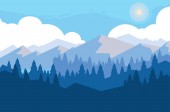 Górski las. Wektorowe tło szablonu plakatu, okładki książki, banera, ulotki i nagłówka strony internetowej