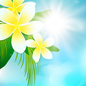Jasnej ramki kompozycji z kwiatów i palm pozostawia miejsca na tekst