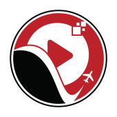 Projekt logo przycisku odtwarzania samolotu. Samolot i symbol rekordu lub ikona. Wektor projektowania logo mediów turystycznych.