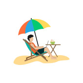 Zdjęcie "Szczęśliwa para relaksująca się siedząc na leżaku na plaży pod parasolem. Ilustracja wektora." może być wykorzystywane do celów osobistych i komercyjnych zgodnie z warunkami zakupionej licencji Royalty-free. Obraz jest dostępny do pobrania w jakości wysokiej rozdzielczości do 5760x3840.
