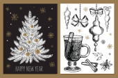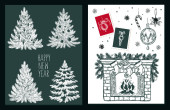 Pocztówka świąteczna, pocztówka, ilustracja.