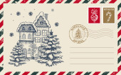 Pocztówka świąteczna, pocztówka, ilustracja.