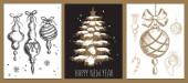 Choinka, zabawki, ręcznie rysowane styl, wektor ilustracja