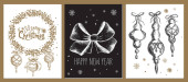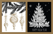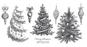 Choinka, zabawki, ręcznie rysowane styl, wektor ilustracja