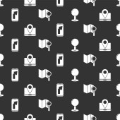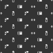 Zestaw patelni, wagi i mikser elektryczny na bezproblemowym wzorze. Wektor
