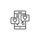 Social Media Marketing ikona z czarnym stylu konturu. media, sieć, społeczność, komunikacja, telefon komórkowy, aplikacja. Ilustracja wektora