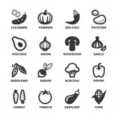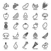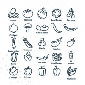 Warzywa, prosty zestaw wektorowych ikon liniowych. Zdrowe jedzenie. Marchew, fasola, ogórek, ziemniak, kalafior, cebula i wiele innych. Izolowany zbiór ikon warzyw do stron internetowych na białym tle.