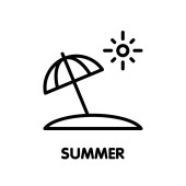 Letnia ikona wektora. Symbol w stylu Line Art dla projektowania, prezentacji, strony internetowej lub mobilnych elementów aplikacji, logo. Ilustracja symbolu plaży. Grafika wektorowa pikseli - Wektor