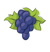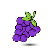 Fioletowe pyszne winogrona w płaskim, prostym stylu z czarnym obrysem. Ikona owoców, zdrowa żywność, przyroda i rośliny