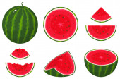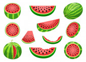 Zestaw arbuzów zawiera soczyste plasterki, orzeźwiające napoje i lody lodowe na letni piknik lub imprezę przy basenie. Izolowane Ikony Idealne na Wydarzenia Tropikalne. Ilustracja wektora kreskówek