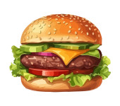 Grillowany cheeseburger na bułce sezamowej na białym