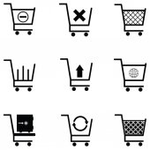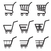 Zestaw ikon koszyka na zakupy. Kolekcja ikon internetowych dla sklepu internetowego. Ilustracja wektora