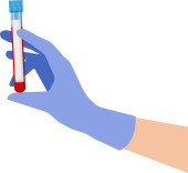probówkę w dłoni z rękawiczkami. Ilustracja wektora - zestaw przedmiotów medycznych