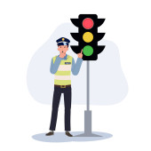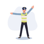 Zdjęcie "Policja drogowa salutuje. Płaska ilustracja wektor kreskówki" może być wykorzystywane do celów osobistych i komercyjnych zgodnie z warunkami zakupionej licencji Royalty-free. Obraz jest dostępny do pobrania w jakości wysokiej rozdzielczości do 5760x3840.