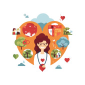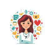 Wektorowa ilustracja płaskich kolorowych ikon z długimi cieniami. Streszczenie tła medycyny z medycznych, zdrowia, opieki zdrowotnej, lekarza, pigułki, symbole krzyża. Elementy konstrukcyjne do aplikacji mobilnych, webowych.