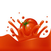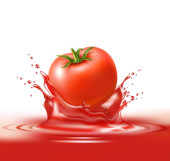 Zdjęcie "Realistyczny dojrzały pomidor w czerwonym soczystym plusku. Eksplozja soku pomidorowego 3d wektor dla zdrowego, ekologicznego projektu opakowań produktów. Świeży napój, płynący ruch soku pomidorowego" może być wykorzystywane do celów osobistych i komercyjnych zgodnie z warunkami zakupionej licencji Royalty-free. Obraz jest dostępny do pobrania w jakości wysokiej rozdzielczości do 5760x3840.