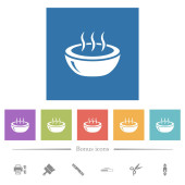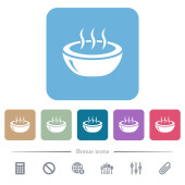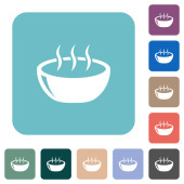 Błyszcząca miska na parze białe płaskie ikony na zaokrąglone kwadratowe tła