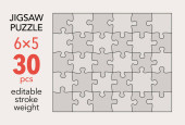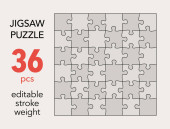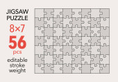 Puste puzzle szablon siatki, 7x6 kształty, 42 kawałki. Oddzielne pasujące elementy układanki. Płaski wektor ilustracji układ, każdy kawałek jest w jednym kształcie.
