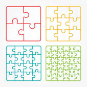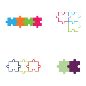 Zestaw połączonych części układanki linii płaski wektor ilustracji. Szablony infograficzne z oddzielnymi pasującymi kawałkami. Koncepcja pracy zespołowej.