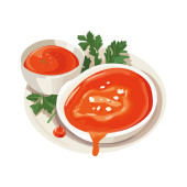 Świeża zupa z organicznym pomidorem i ikoną pietruszki izolowane