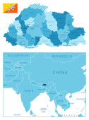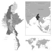 Myanmar - niebieska mapa z sąsiednimi krajami i nazwami. Ilustracja wektora