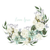 Akwarela ślubna z wisteria, róże i dzikie kwiaty, zielone liście. Ilustracja