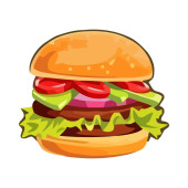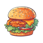 Grillowany burger na bułce sezamowej z ikoną sera izolowany