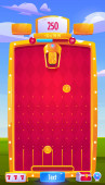 Karnawał strzelać gry, kabina park rozrywki. Cartoon wektor kaczka polowanie wesołe miasteczko lub cyrk strzelanie wesołe miasteczko rozrywki. Małe stoisko z drake ptaków, cele, staw z falami i karabin pistolety w rzędzie