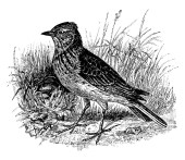 Skowronek lub alauda arvensis rocznika Grawerowanie.