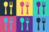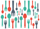 Kolorowe sztućce łyżeczka i widelec wzór współczesnej. Szablon graficzny ilustracja wektor.