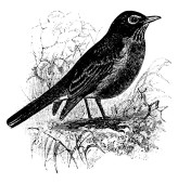 Garncarz rdzawy lub furnarius rufus, vintage Grawerowanie
