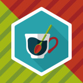 płaskie ikona gorącej herbaty z długim cieniem, eps10