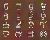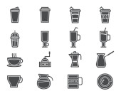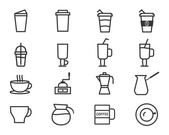Kuchnia i gotowanie zarys zestaw ikon. Poranną kawę. herbata, śniadanie, symbole i elementy.