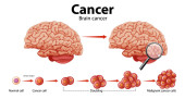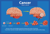 Rak mózgu. Medyczny wektor ilustracja w płaskim stylu czterech etapów raka mózgu. izolowane na białym tle.opieki zdrowotnej i pojęć medycznych.
