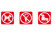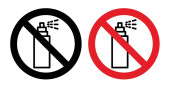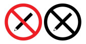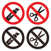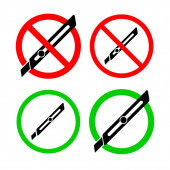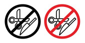 Nie wycinaj ikony znaku. Zakazane stosowanie noża i noża w czarnym, wypełnionym i zarysowanym stylu. Zakaz ostrza niebezpiecznego i znaku separatora opakowań.