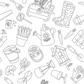 Wzór z narzędzia ogrodnicze, donice, ziół i warzyw.
