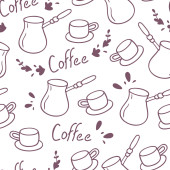 Filiżanka kawy naszkicowanych z kwiat wanilii wzór zarys