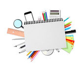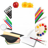 Powrót do szkoły. Notatnik z przyborów szkolnych. wektor.