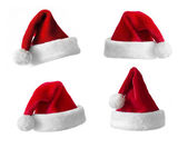 kolekcja czerwone kapelusze santa z i Boże Narodzenie holly. wektor.
