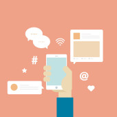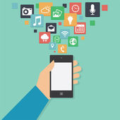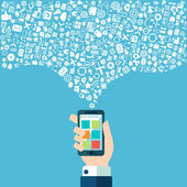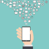 Rękę z telefonem i bezprzewodowy dostęp do Internetu chmura ikony wektor