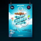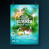 Wektor ulotki Party plakat szablon na temat lato plaża streszczenie tło błyszczący.