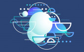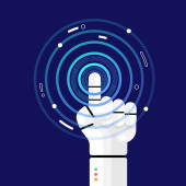 AI Strategia Digital Marketing koncepcja ilustracja tło baner, Ai Robot ręka i biznesmen wizja