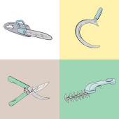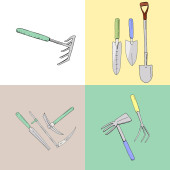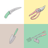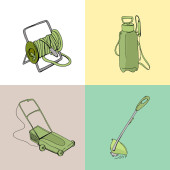 Zielony pojemnik na białym tle narzędzia ogrodnicze